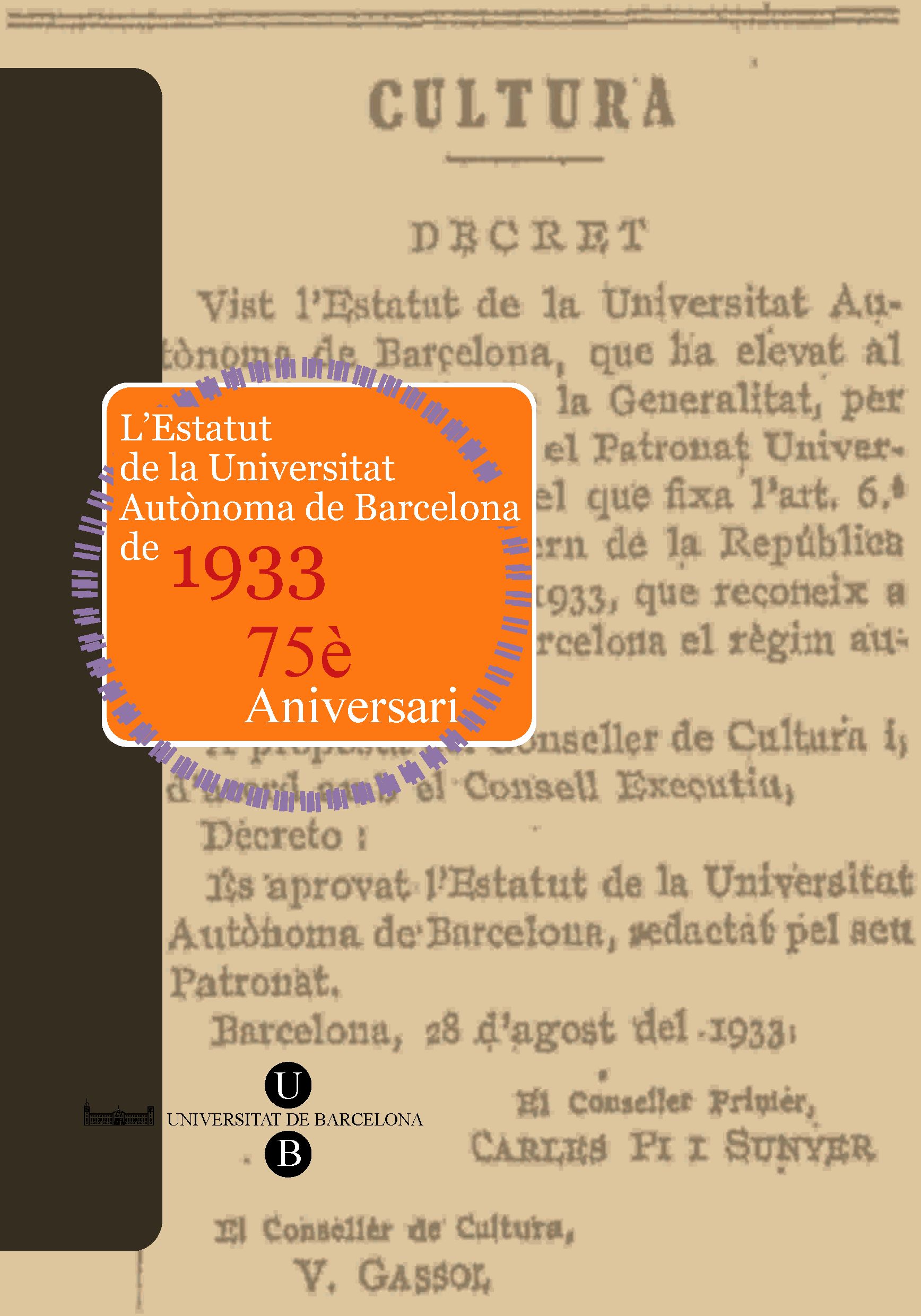En el setanta-cinquè aniversari de l?Estatut de la Universitat Autònoma de Barcelona de 1933, quan la Universitat de Barcelona va esdevenir autònoma, s?ha editat aquesta ...